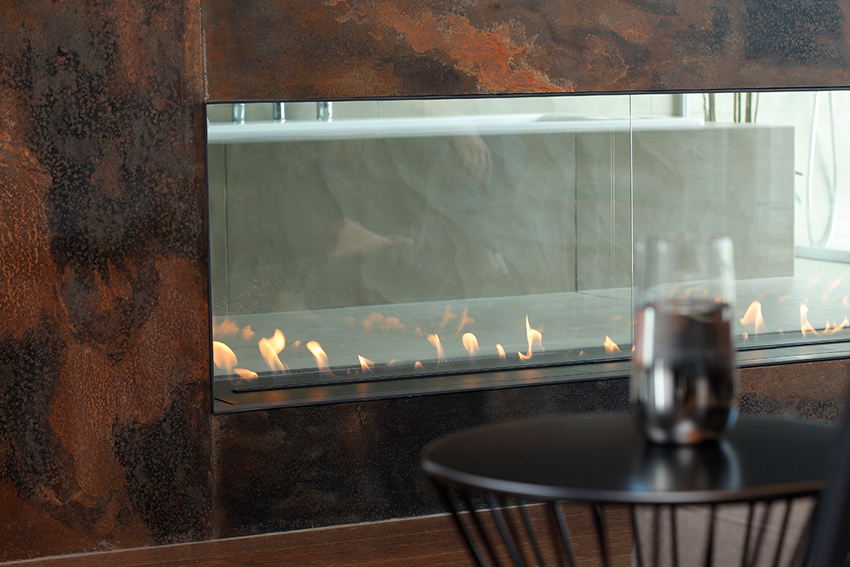 Üllatav on ka biokamin, mis on puldist lülitatav ja näitab end nii spa-ruumide kui elutoa poole ning mille kohal leidis paiga ka televiisor.