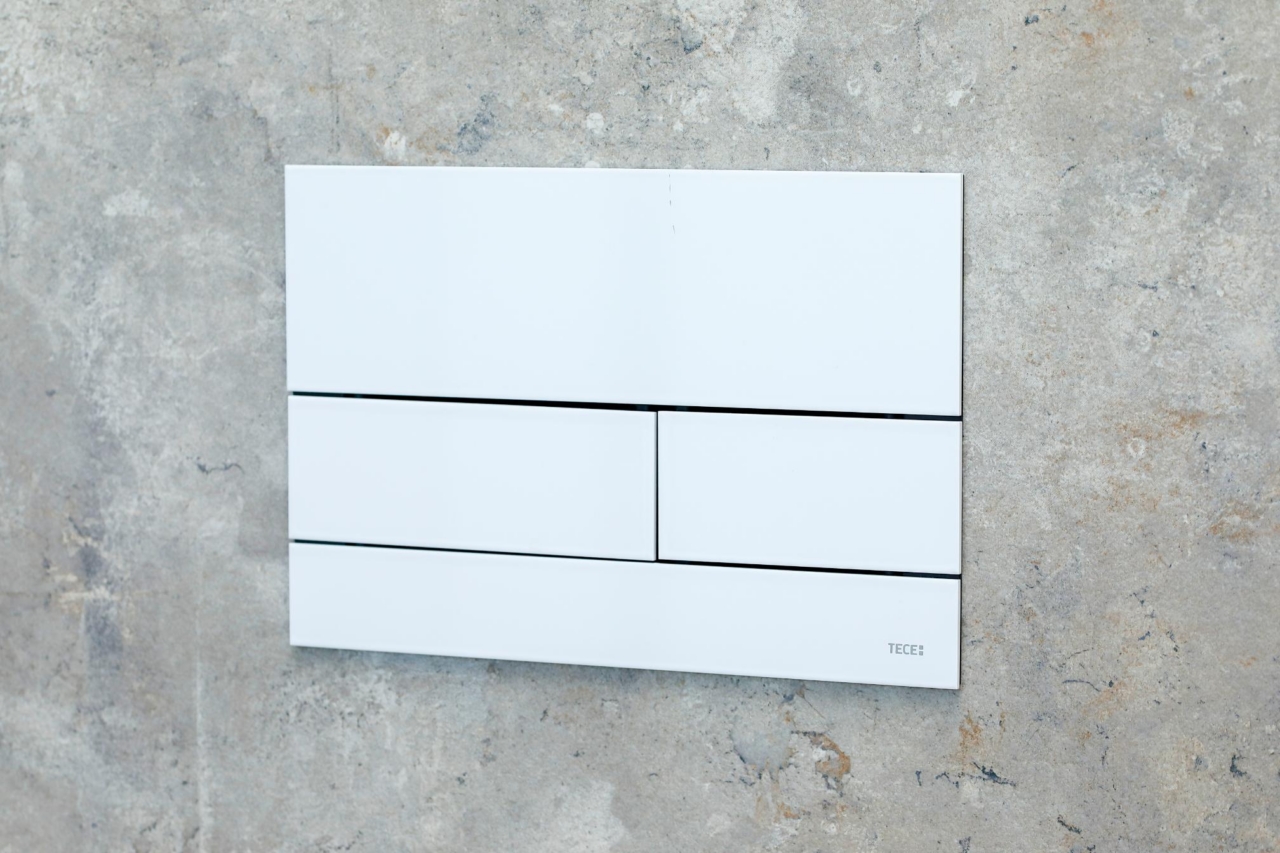 Kui nüüd jõudsime vannitoas valikuga wc potini ja oleme otsustanud, et see läheb raami otsa seina taha siis meie kasutame väga tihti ja valdavalt TECE raame. Miks? Meile väga meeldib see, et me võime kliendile selle raami ära müüa ja kogu tegevus, kogu disain võib olla veel täiesti lahtine ja poolik, ehitaja saab ehituslikult edasi liikuda ja meie võime loputusplaadi valikuga tulla ja tegeleda alles siis, kui juba ollakse valmis otsuseid tegema segistite osas, plaatide osas- siis kui hakkab disain joonistuma välja, sest TECE raami juures on tore eelis, et ühe raami otsa lähevad tema kõik nupud. Kõik loputusplaadid, mis siis TECE on välja pannud, kõik nad sobituvad ühe-sama raamiga. See teeb siis nii arhitekti kui kliendi elu lihtsaks. Ei ole vaja kiirustada.