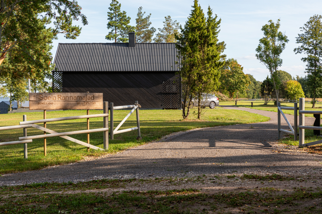 Võssa kasvanud karjamaast sündis mereäärne arhitektuurne vahepeatus, kus lihtsus ja salapära käivad käsikäes. Arhitekt Vahur Sova otsis vormi, mis oleks arhetüüpne ja tagasihoidlik – nagu paadikuur või tarbehoone, kuid mille kesta sisse on peidetud midagi pigem nooblit. Väljast karm ja isegi toores, seest seevastu helge ja rahulik, loob hoone teadliku kontrasti. Arhitektuurne sisu ei paljastu korraga, vaid vilksatab – just nii palju, et tekitada uudishimu. Mere poolt avaneb maja rohkem lastes valgusel ja vaadetel ruumi sisse voolata. Kompaktne, ent läbimõeldud ruumiprogramm mahutab väikese seltskonna midagi olulist ohverdamata. Sisearhitekt Aet Grigorjev on kasutanud valdavalt naturaalseid ja kohalikke materjale, toetudes Saaremaa käsitöölistele ja tootmistele. Valguse, tumedate pindade ja suurte klaasavade tasakaal loob meditatiivse atmosfääri. See on paik, kus lihtsad vormid ja täpne proportsioonitunnetus hakkavad vaikselt tööle. Maja, mis võiks kuuluda siia või ükskõik millisele põhjamaa rannikule – ajatu ja kohalolev korraga.