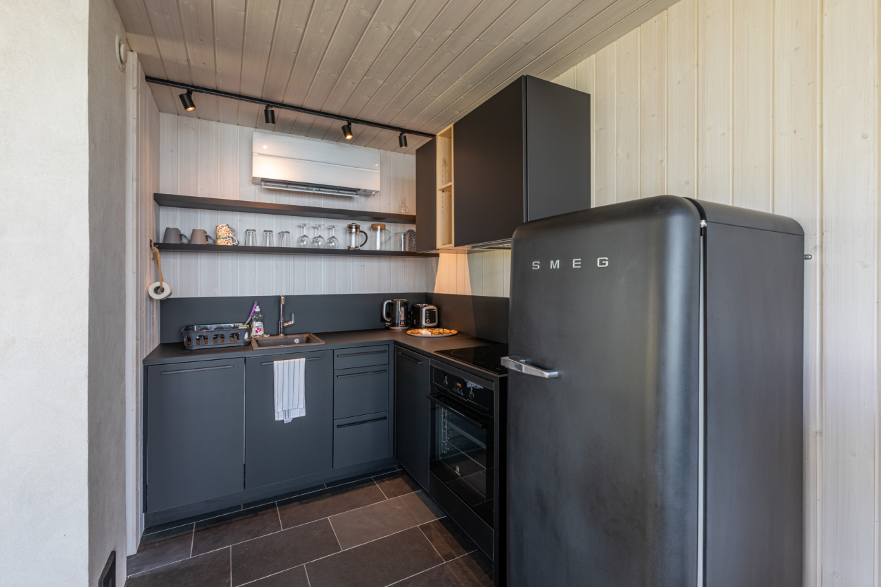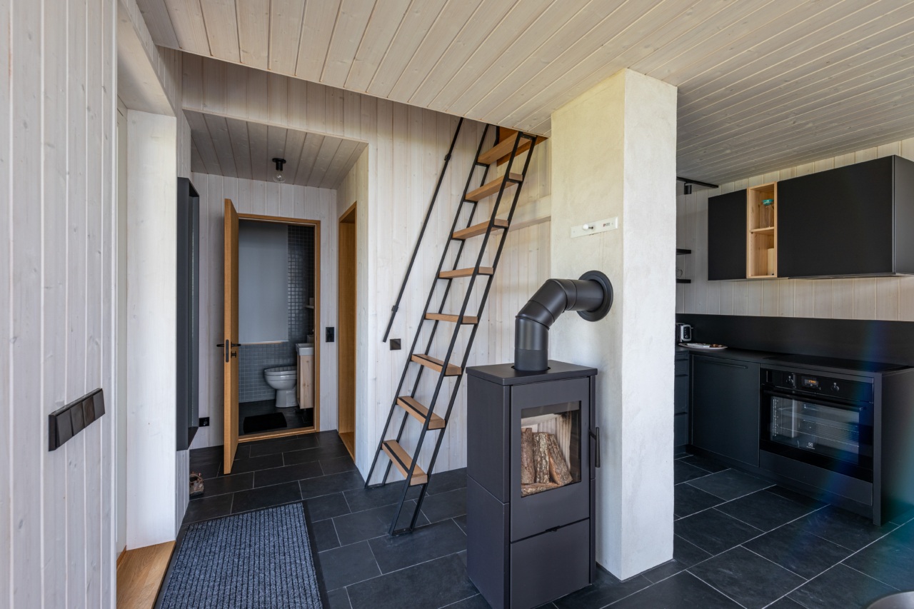 The building footprint is just 60 square metres, so the constraints were very real. At one point, I even made them slightly smaller, but the client felt that the target group and market segment allowed for a little more generosity. Maximum views to the sea were created — views that are genuinely fairytale-like. Quite accidentally, the place has become deeply meditative. When I was here last night, there was no sun, just a soft evening light, and it felt almost otherworldly — as if one were on an artificial planet.