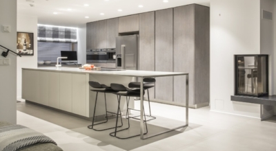 Siinselt kodult sai nii palju kujunduslikult tahetud, kui üldse vist võimalik on. Väike, aga avar; elegantne, aga vastupidavatest ja kergesti puhastatavatest materjalidest, samas heas hinnaklassis! Pidi olema valgusküllane, aga valgusallikaid ei tohtinud näha olla. Köök pidi kaunis välja nägema ja elutoa suunas ja minema üle elutoaks. Et köögiuksed vastaksid nõudmistele, st oleksid vähe määrduvad ja niiskusele mitte vastuvõtlikud, värvis mööblifirma Heraxs need spetsiaalse granuleeritud värviga.