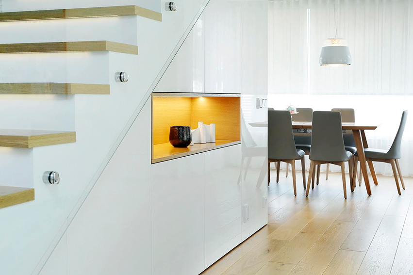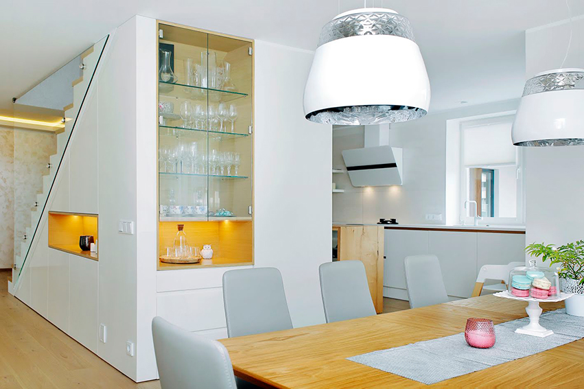 - Erakordselt praktiline trepimaht, mis on ühest küljest köök, teisest elegantne puhvetkapp, kolmandast panipaik ja neljandast mõistagi trepp.